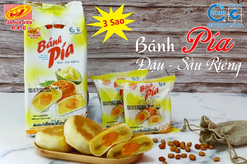 Đối với những thực khách đã một lần đến và thưởng thức Bánh Pía Sóc Trăng, chắc hẳn sẽ không bao giờ quên được hương vị của Bánh Pía Đậu Xanh Sầu Riêng. Đây là một loại bánh Pía truyền thông nhưng vẫn giữ được sức hút mạnh đến thời điểm hiện tại. Nguyên liệu: Đậu xanh 23,8%, bột mì đường cát, sầu riêng 15,7%, dầu thực vật, mứt bí, lồng đỏ hột vịt muối, mạch nha, nước, màu thực phẩm B-35-WS-P Trọng lượng: 440gr Thời hạn sử dụng: 75 ngày kể từ ngày sản xuất Cách dùng: Thưởng thức ngay sau khi mở bao bì