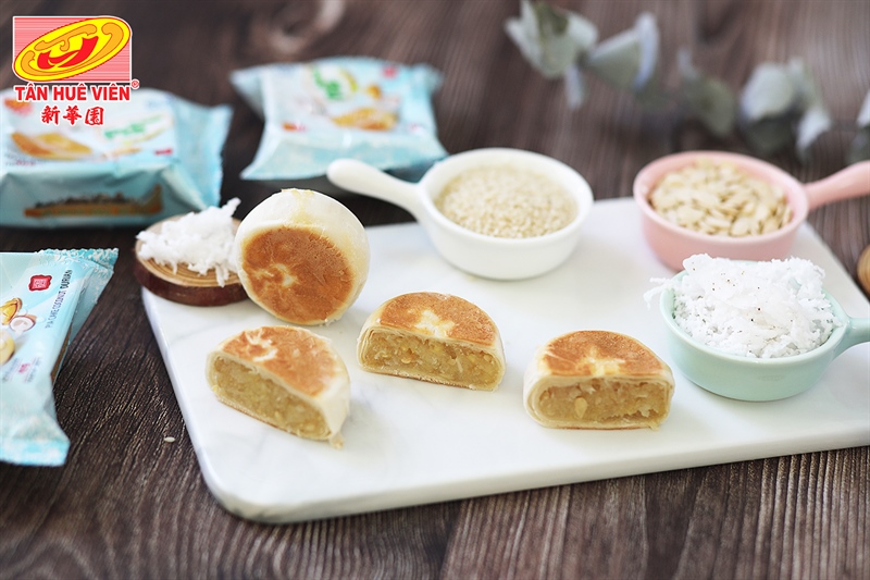 Những chiếc bánh Pía nhỏ xinh, dẻo thơm, béo ngậy mùi dừa, sầu riêng tươi, bùi bùi của hạt dưa, sẽ “ru khẩu vị” của các bạn khi thưởng thức qua món BÁNH PÍA DỪA SẦU RIÊNG – một loại bánh mới của công ty Tân Huê Viên được cho ra mắt vào tháng 10 năm 2021.